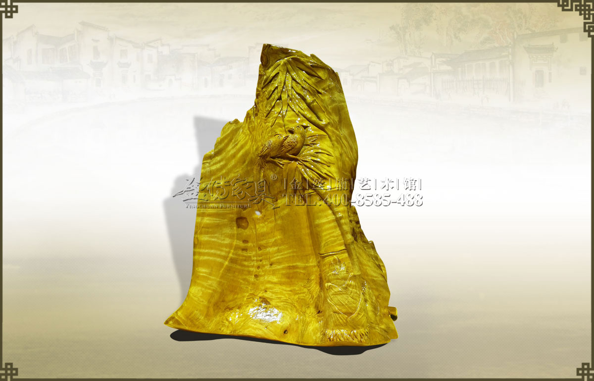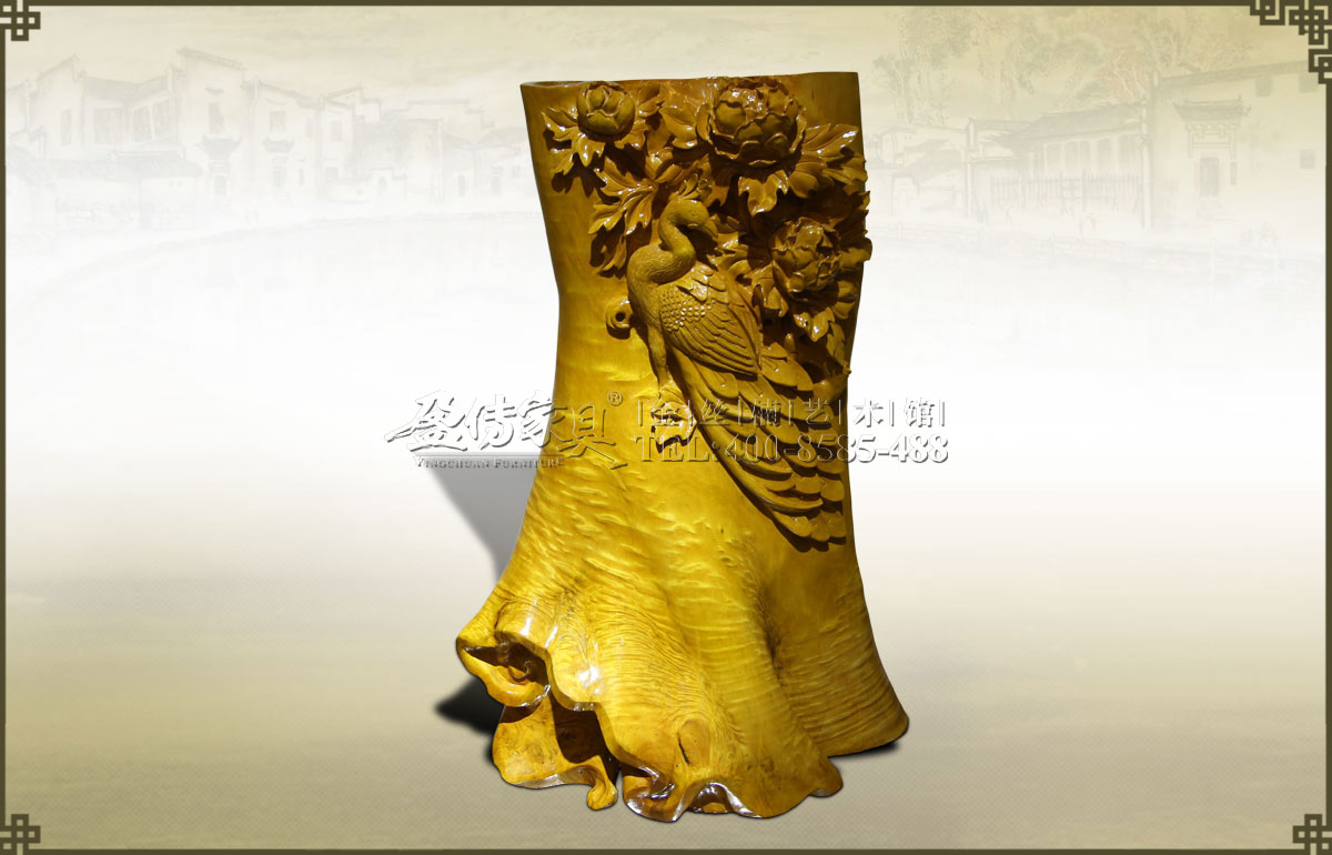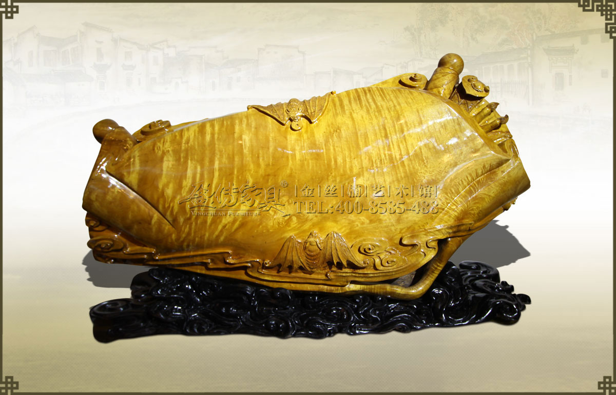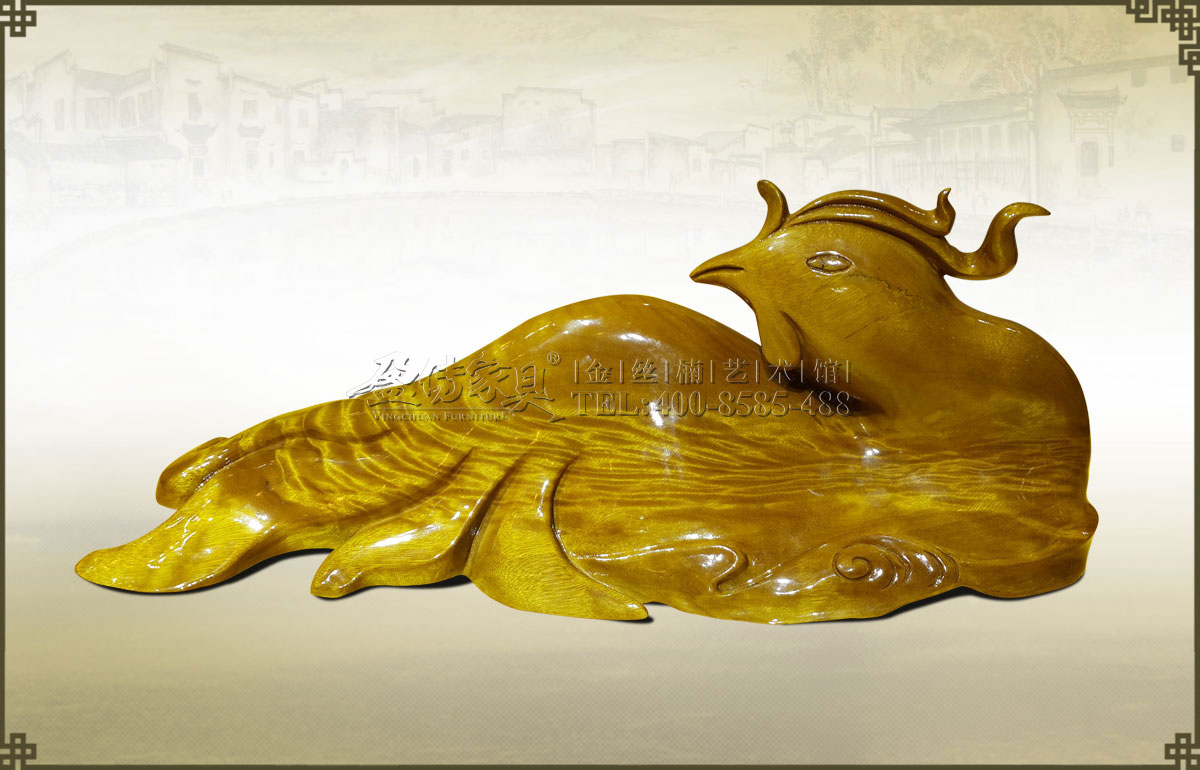此金絲楠鳳凰雕工嫻熟,精巧別致,典雅大方。千變?nèi)f化的水波紋猶如鳳凰的羽毛,十分驚艷。它能完美地點(diǎn)綴家具的角落,彰顯高貴奢華的家居氣息,同時(shí)映襯出主人尊貴高尚的品位。 ...