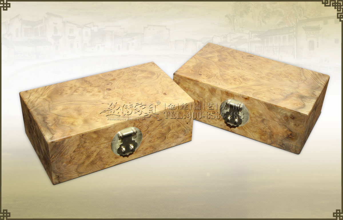 木瘤是指樹木生病產(chǎn)生的結(jié)瘤,生成條件苛刻,稀少又難得。并且這個(gè)部位的木材紋理漂亮特殊,裝飾效果奇異,歷來很受人喜愛,因此更具價(jià)值。 此金絲楠瘤花首飾盒的瘤花紋遍布...