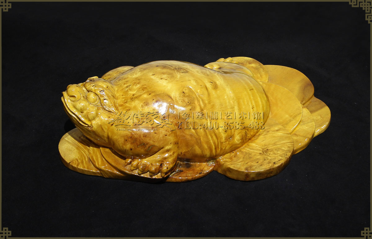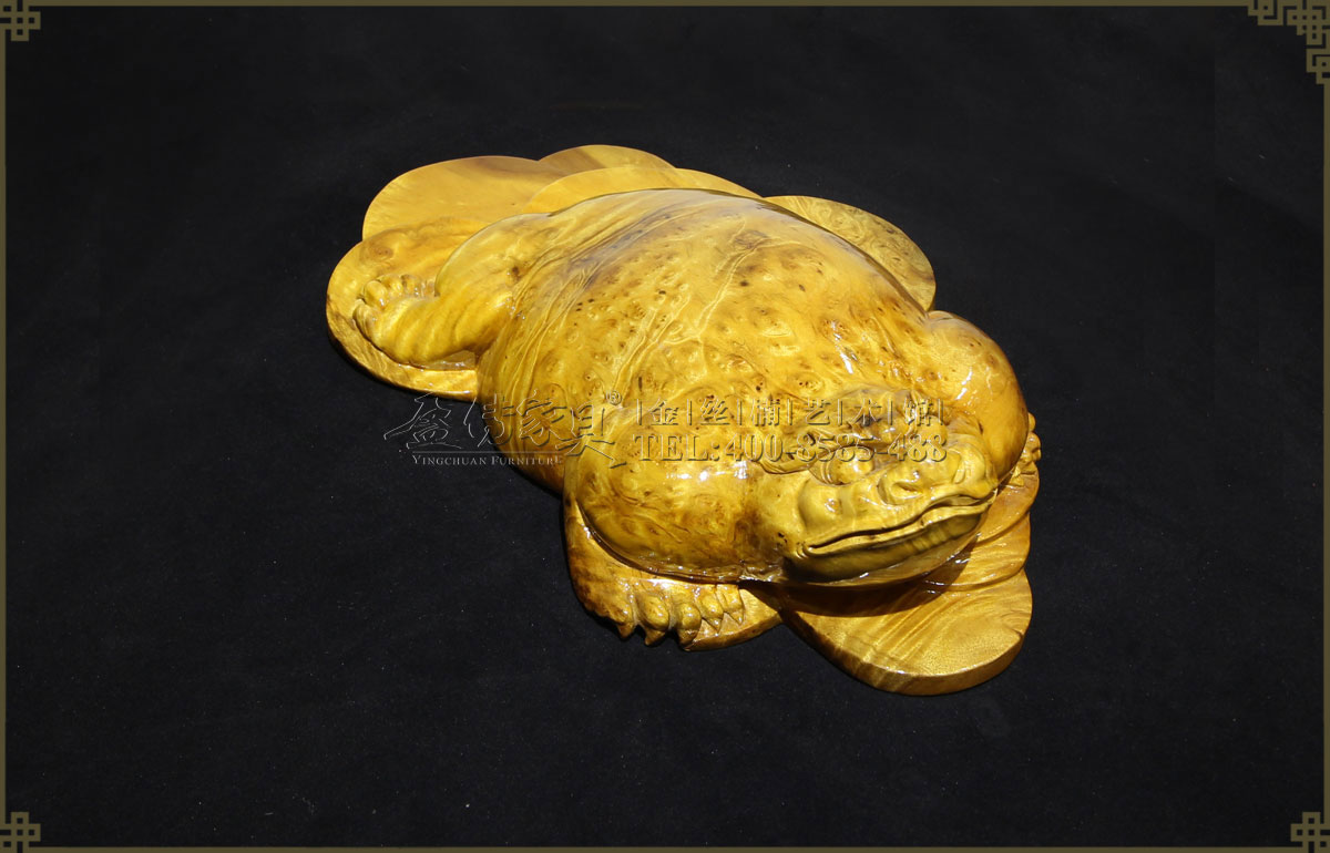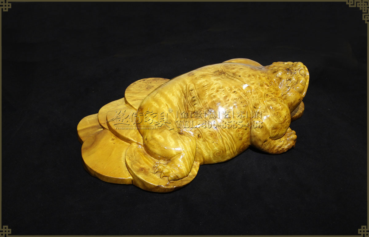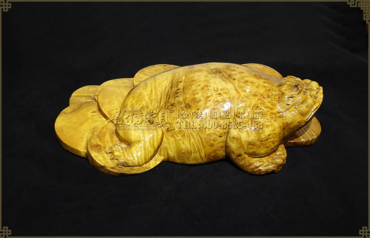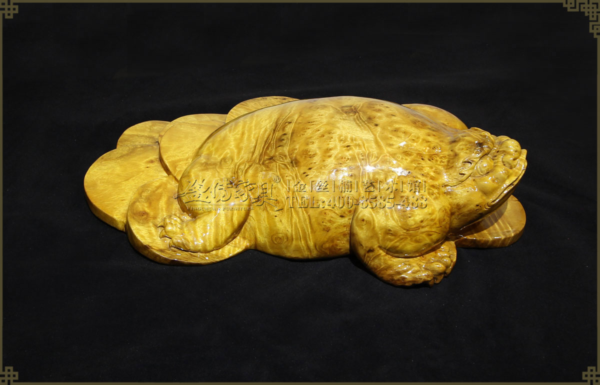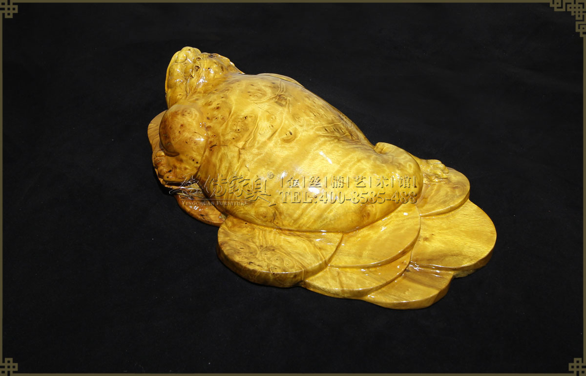 此金絲楠癭木三腳金蟾由罕見(jiàn)的金絲楠樹瘤雕刻而成,生成條件苛刻,稀少又難得,故為收藏之佳品。這個(gè)部位的木材紋理漂亮特殊,裝飾效果奇異,歷來(lái)很受人喜愛(ài)。其滿瘤花紋如蓮子靜若處子,如山水飄渺自然,如葡萄晶瑩剔透,意境無(wú)限,精美異常,屬上等紋理。