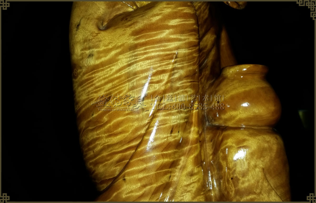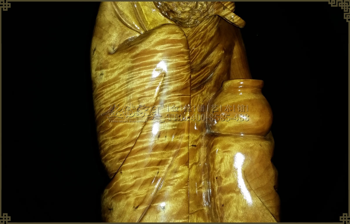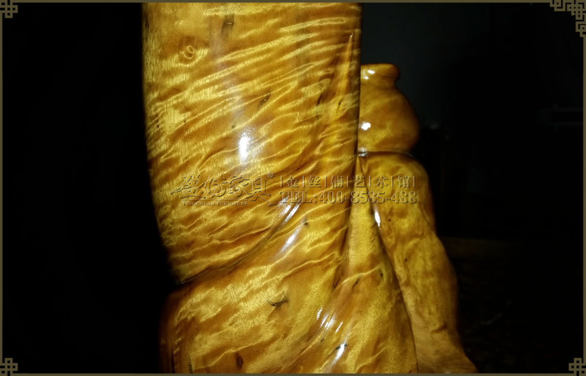 金絲楠達摩經過高級工藝師傅精心雕刻,粗中有細,臉部刻畫惟妙惟肖,整體大氣豪放。線條流暢優美,手感圓潤,美麗的水波紋像流水像云霧像瀑布,擺放在辦公室、家里、商業空間,既高貴獨特又有禪意,也非常適合作為禮物贈予他人。
