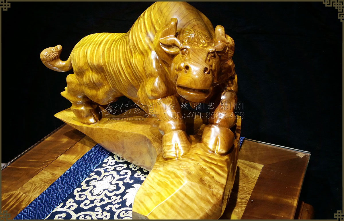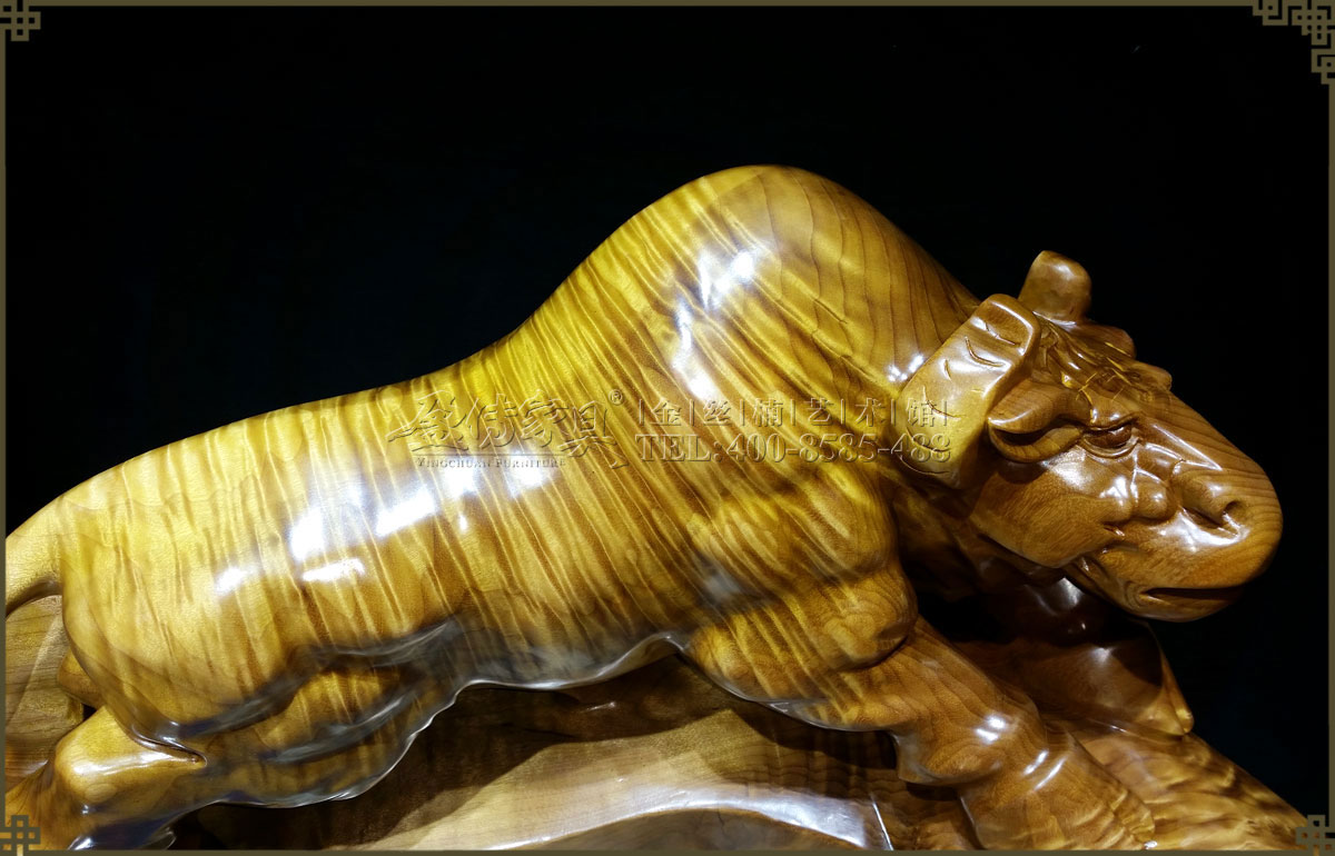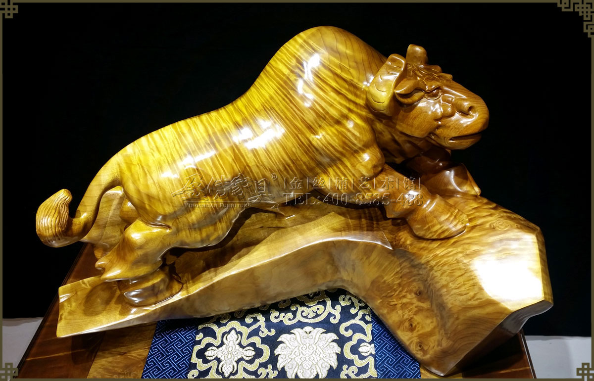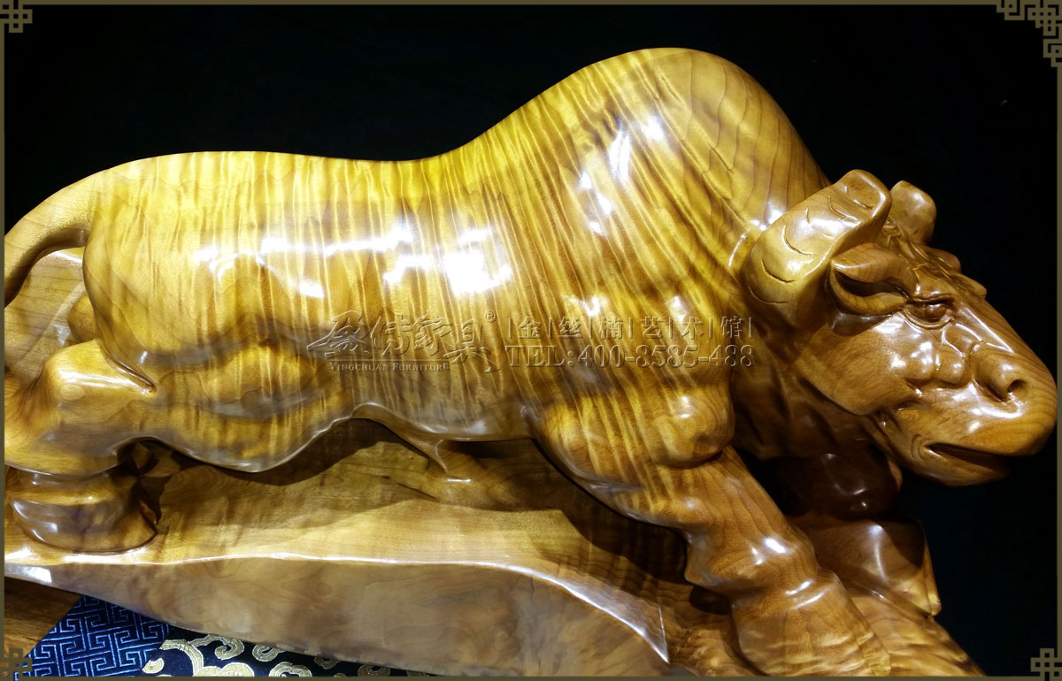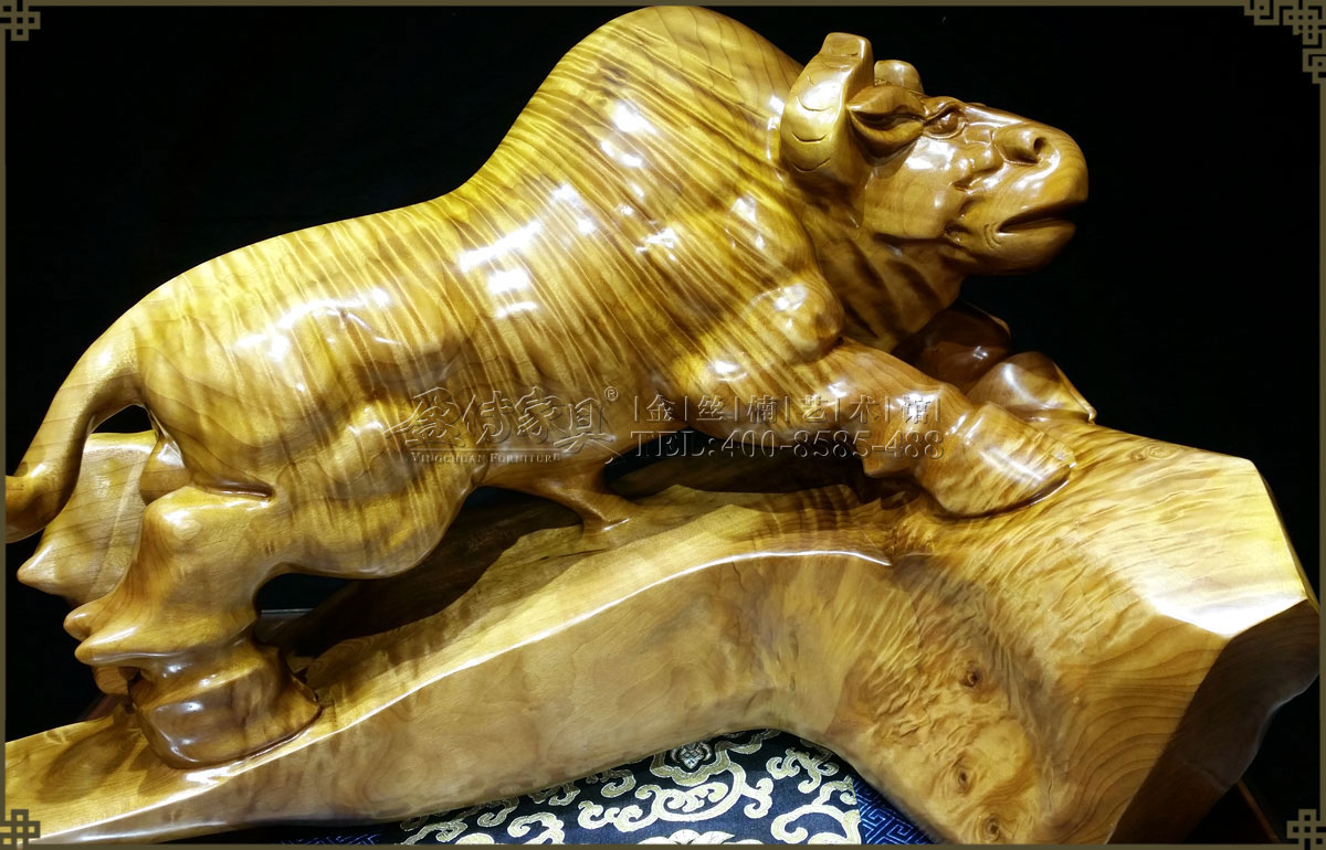 此金絲楠勁牛氣勢如虹,低頭向前,象征著堅韌執(zhí)著,勤奮耕耘,不斷進取的精神,寓意如此努力將帶來滾滾財富。并且,其層次分明的水波紋有很強的立體感,清晰獨特,美不勝收,手感光滑柔潤,讓人愛不釋手,具有很高的收藏價值和欣賞價值。