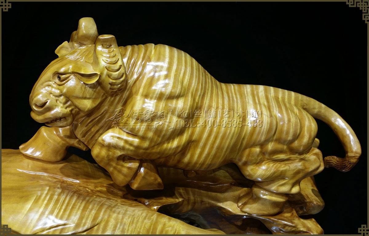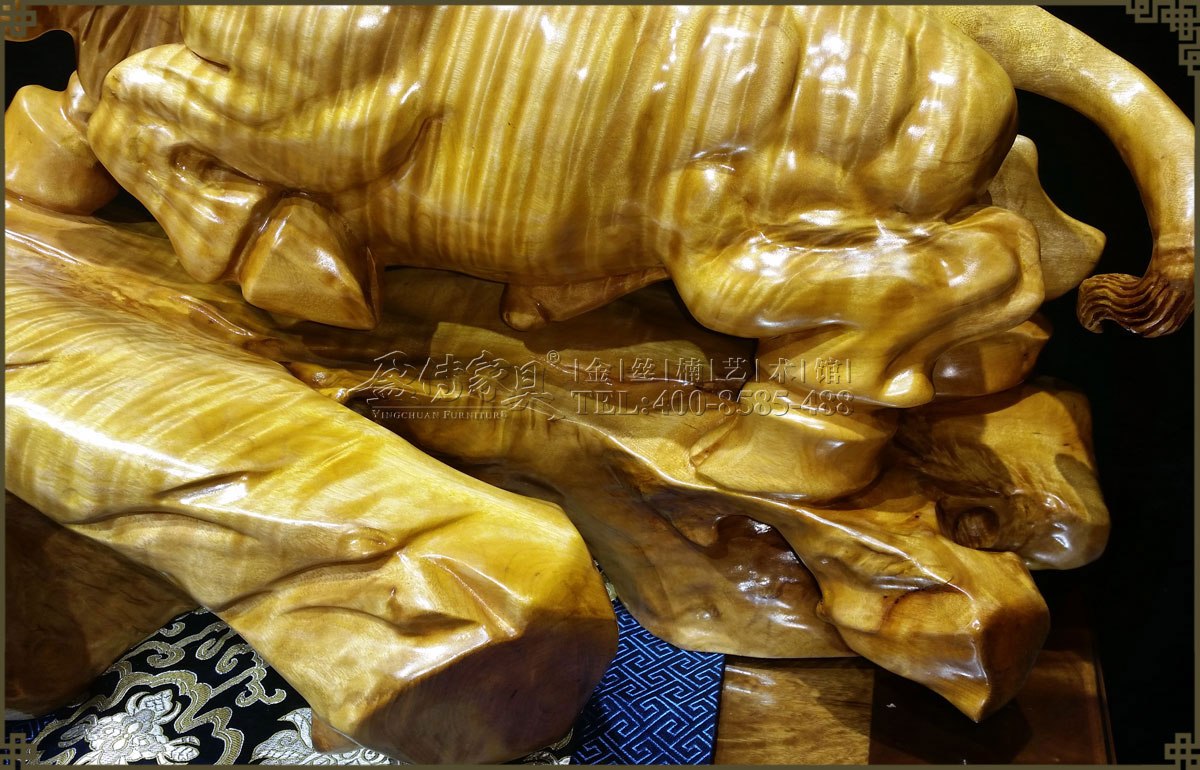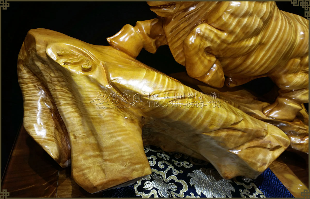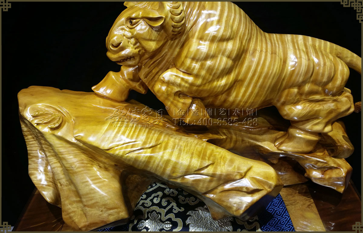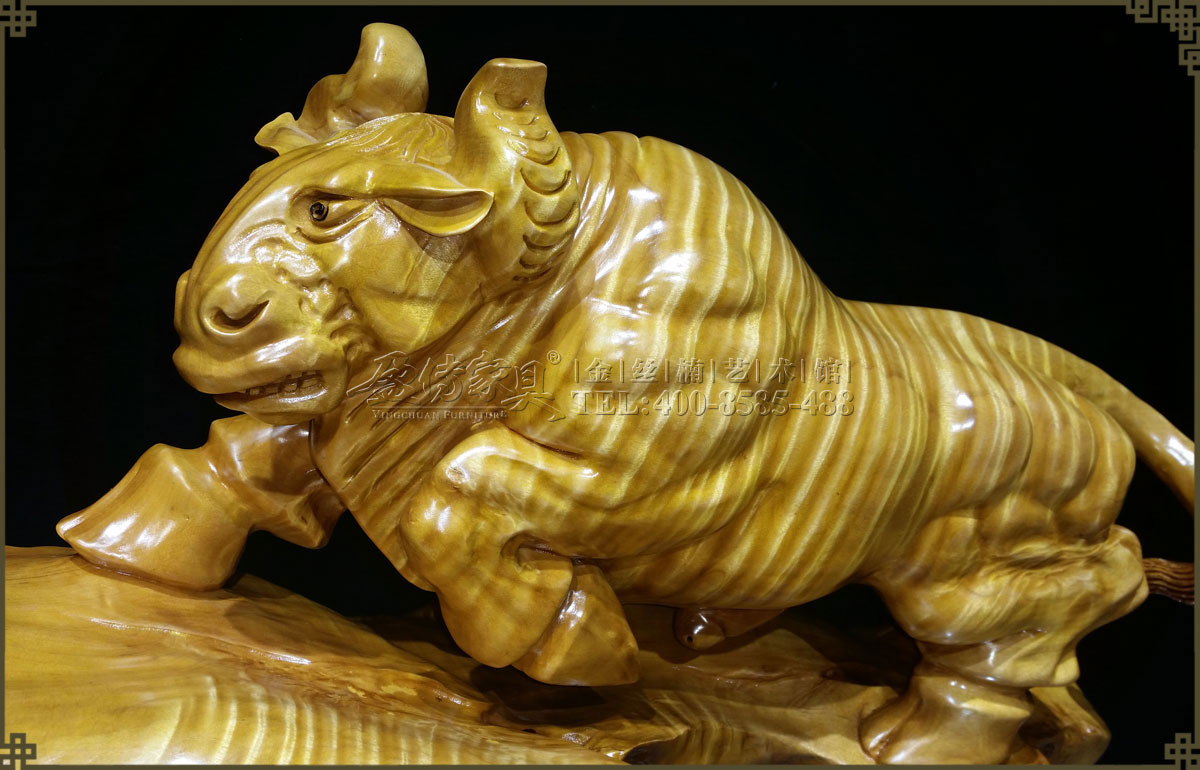 牛象征著勤勞、勤奮、力量,牛氣十足,能給各行各業的耕耘者帶來運氣和財富。此金絲楠牛的水波紋理尤其密集豐富,層次清晰,立體感強,金絲飽滿,炫美至極,實在奪人眼球。并且精雕細刻,形神兼具,生動逼真,牛氣十足、紅紅火火,有著非同一般的收藏價值和升值空間。