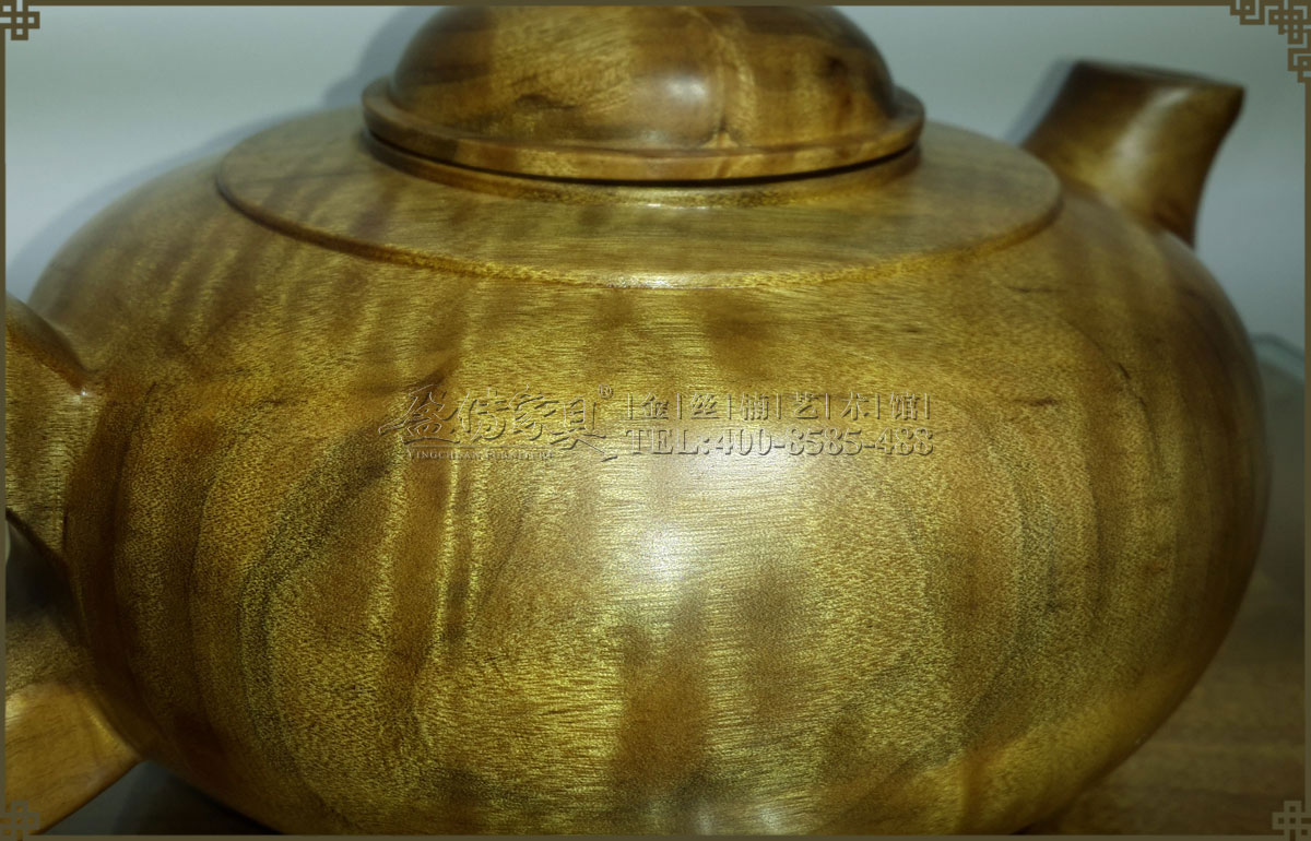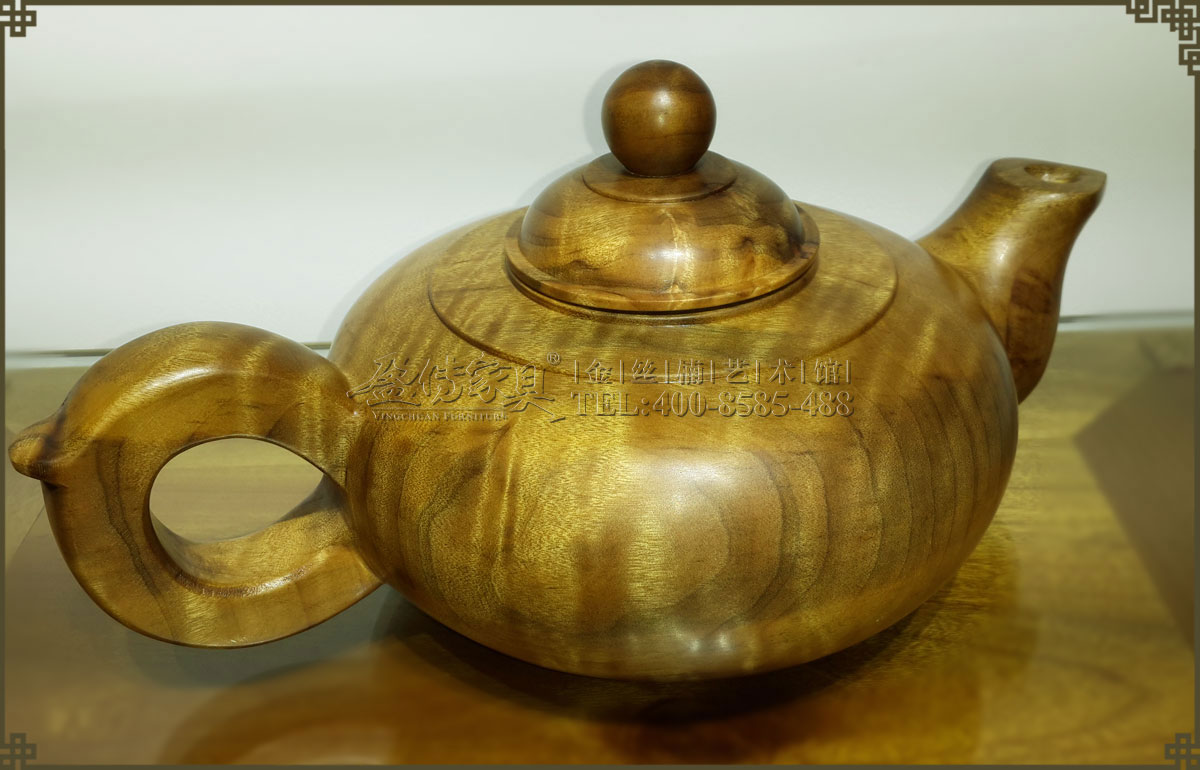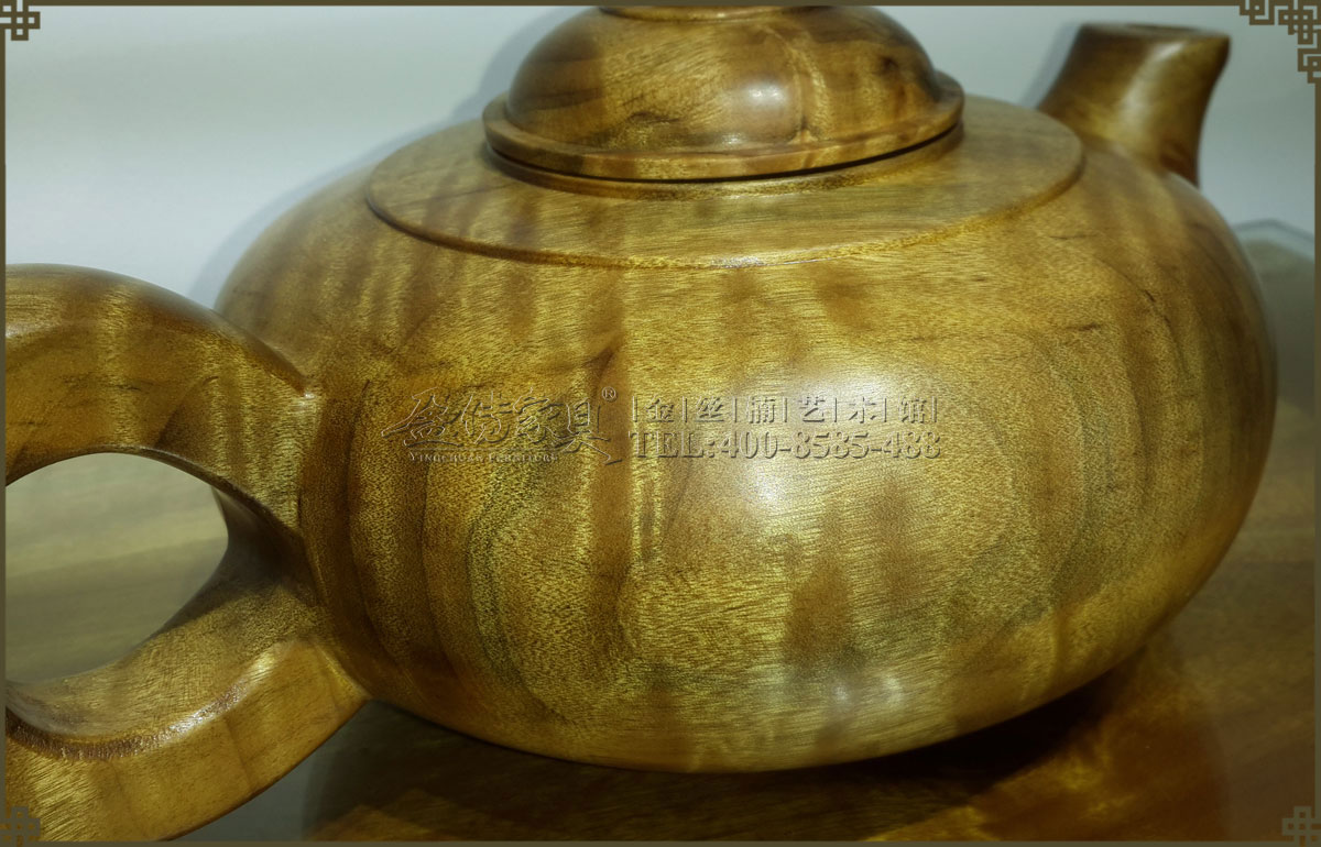 此金絲楠茶壺工藝大師精心手工雕刻,形態優美,線條流暢,仿佛述說著“圓滿融通”的人生哲理。淡淡的水波紋彷如泛起漣漪的平靜湖面,讓觀賞的人內心平和。金絲褶褶生輝,高雅華貴,整體卻高雅脫俗,韻味留長,保留著中國文化古典之美,這就是其獨特之處。無論放置于客廳還是辦公室、商務場所,都能體現主人極渾厚的文化內涵和極高雅興的收藏品味。(注:此茶壺擺件僅作觀賞之用,不用于沏茶。)