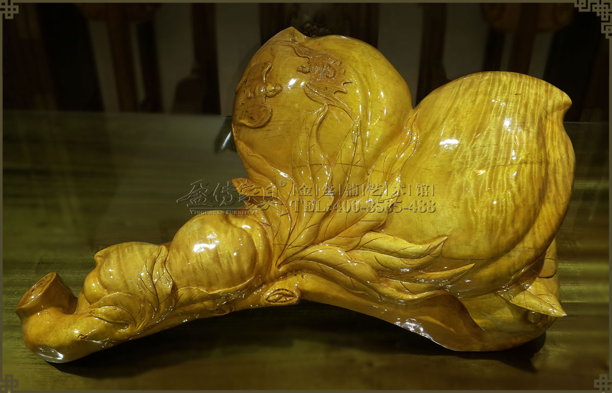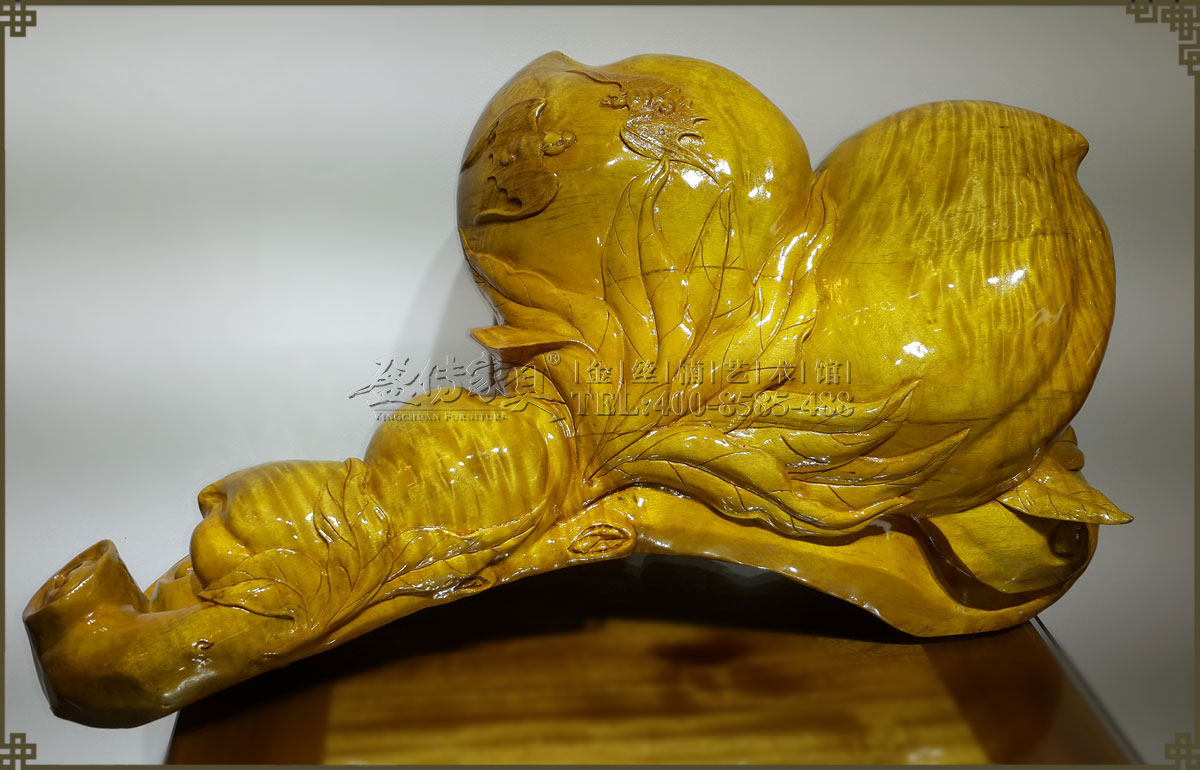 【產品名稱】:金絲楠多福多壽壽桃擺件
