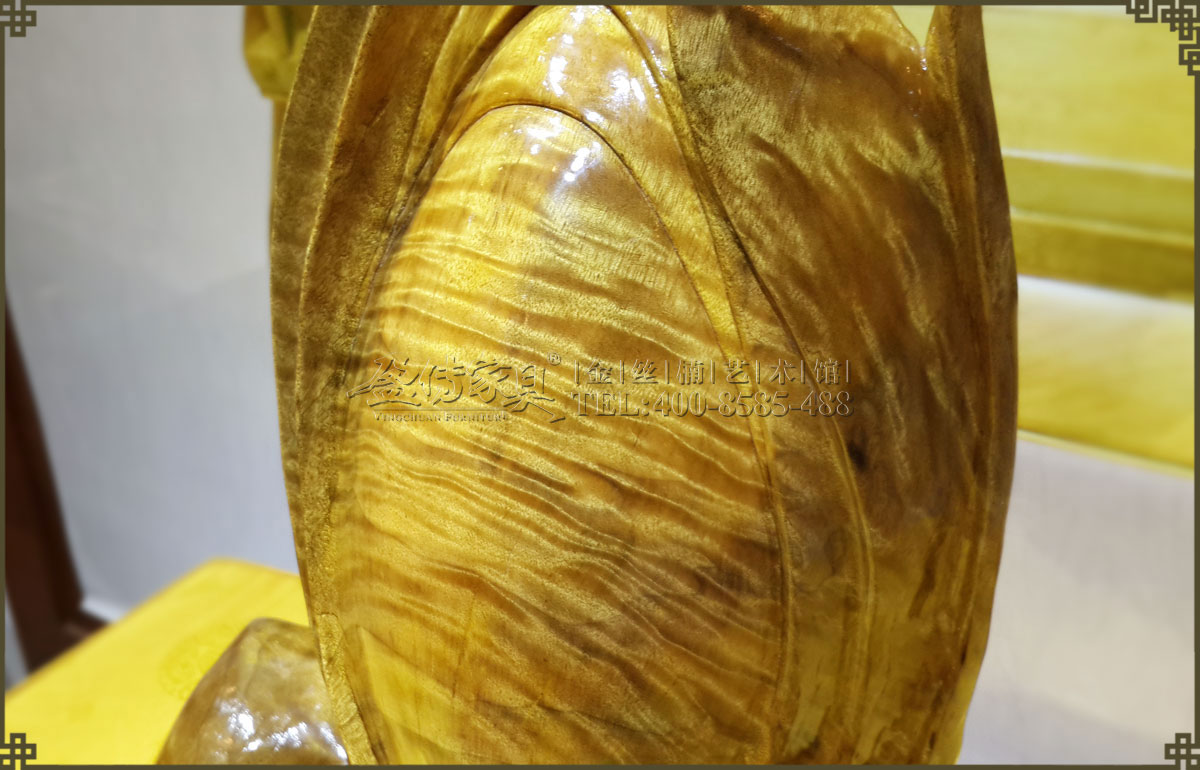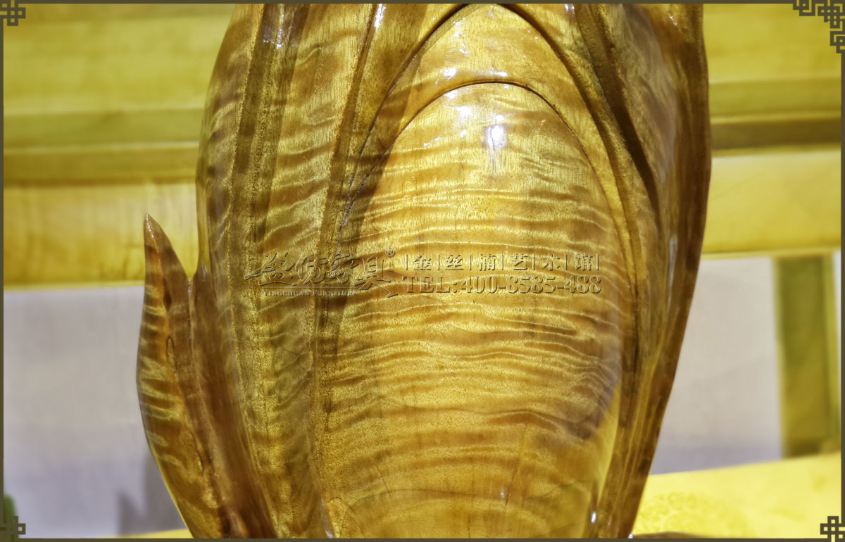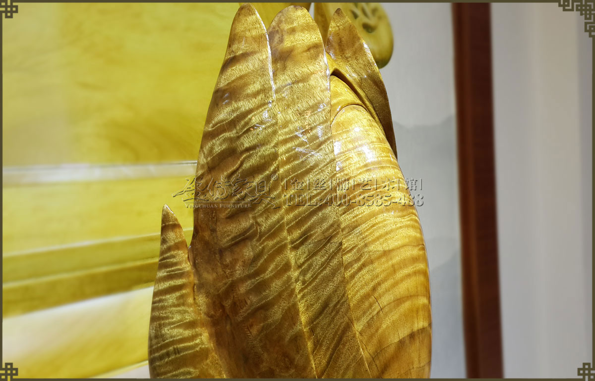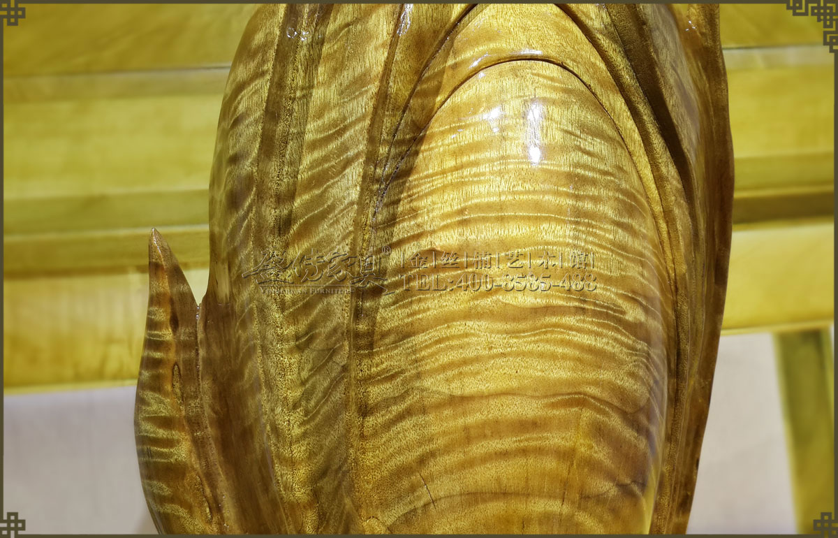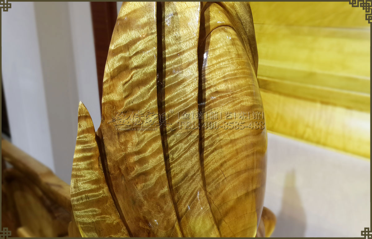 含苞欲放,給人以希望,給人以想象的空間。財(cái)富即將到來,夢(mèng)想即將實(shí)現(xiàn)。獨(dú)特的造型,令金光閃耀、滿水波紋的金絲楠充滿藝術(shù)感,令您的家或辦公場(chǎng)所變得與眾不同,高貴典雅,又生機(jī)勃勃。