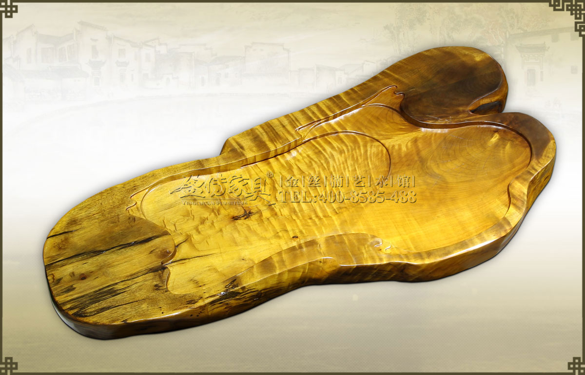 此美麗的茶盤使用金絲楠根料制作而成,紋路眩美清晰,大氣高雅。放客廳,高檔雅致,尊貴典雅,盡享茶道之樂趣;放辦公室,品位十足,盡顯文化與修養;送別人體面有檔次,卻不顯山露水,并能體現送禮者的品位和心意。