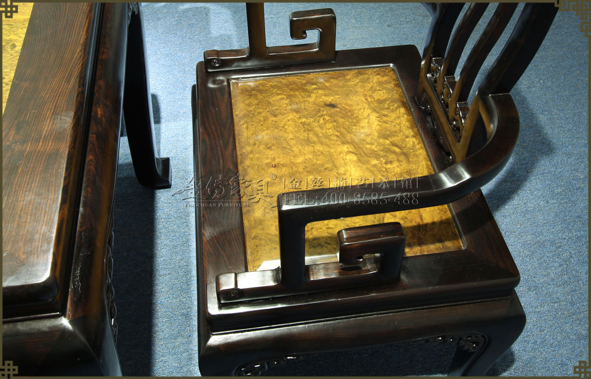 用黑檀做框架,更加沉穩,風格低調而精致。椅子造型獨特,線條流暢,在欣賞價值上更有情調,具有極高的收藏價值。