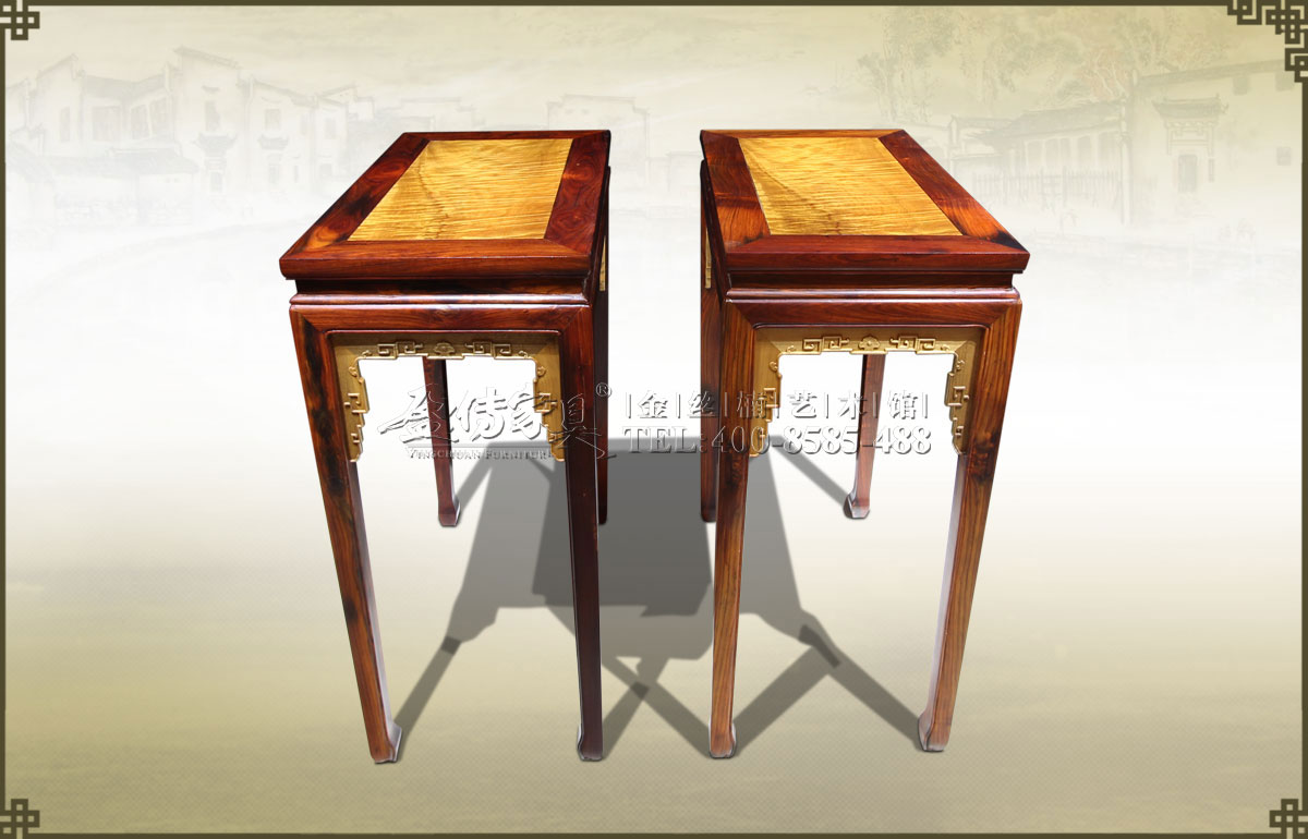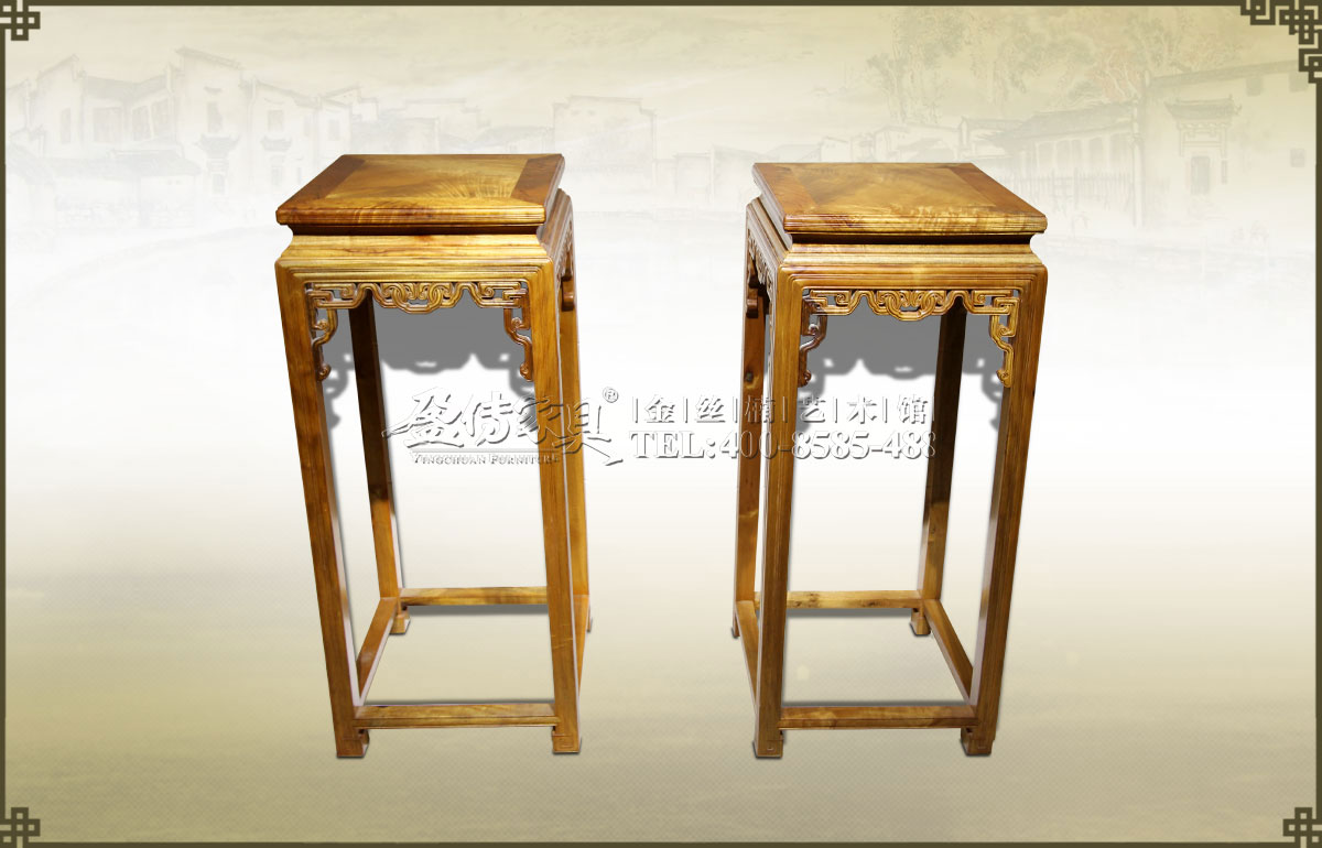 花幾也稱花架,承托花盆、盆景或其它小件擺設(shè)之用。 此花幾造型簡潔,古樸大方,起線工整。金絲楠面板有著清晰美麗的水波紋,豐富立體,層次感很強(qiáng),猶如朝陽光照下的水波漣...