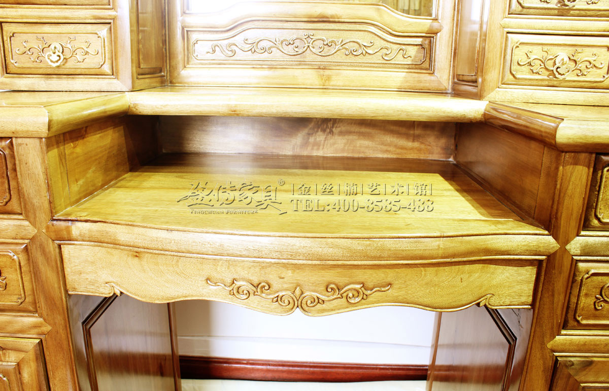 它不僅是一件實用家具,也成為了一種精致生活的裝飾物。女人就應該有一張如此華美的梳妝臺,每天從容認真地梳妝打扮,讓精致的女性風情從中揮發出來,搖曳生姿,做一個美艷動人,優雅大方,快樂幸福的高貴女子。