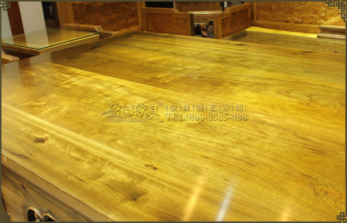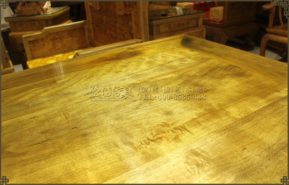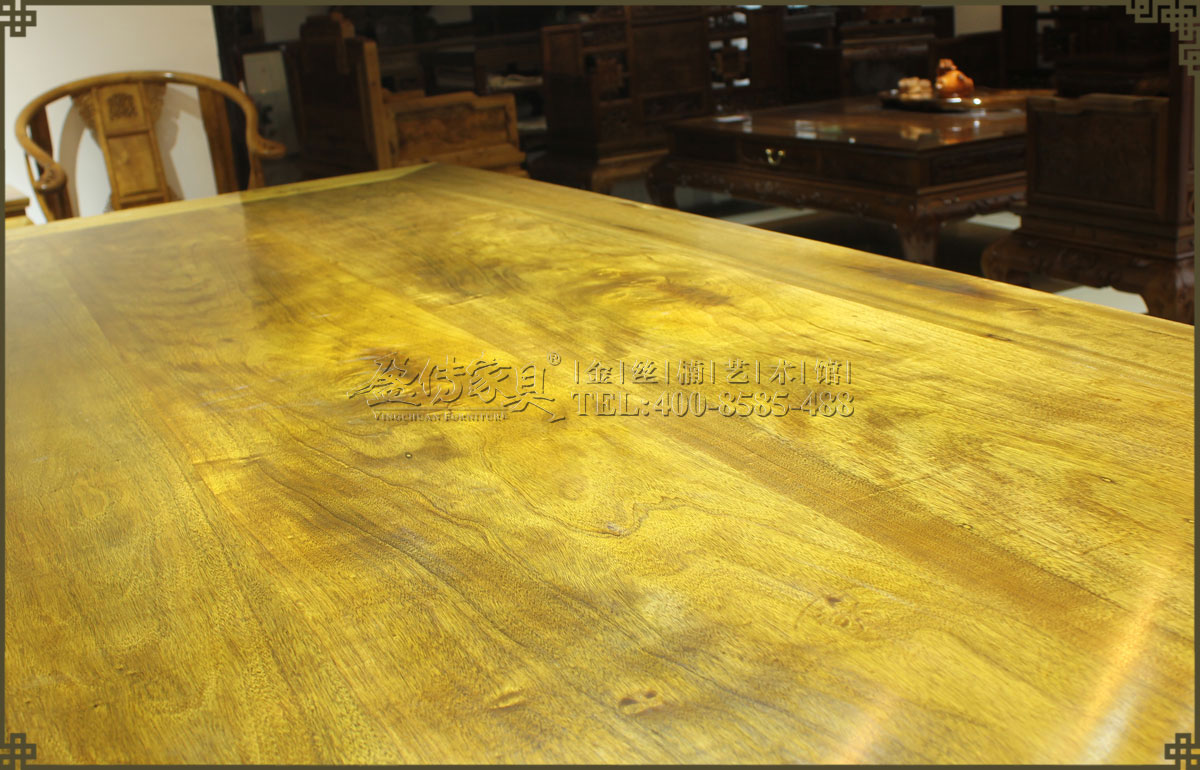 使用金絲楠優質木料,精制仿明式大畫案,紋理清晰漂亮,金絲閃耀。雖無雕刻裝飾,但倍感書香畫意、高雅大氣。造型簡練,線條流暢,打磨精細,而且足夠大,方便寫字作畫,乃文人墨客的喜愛之物,值得收藏和擁有。