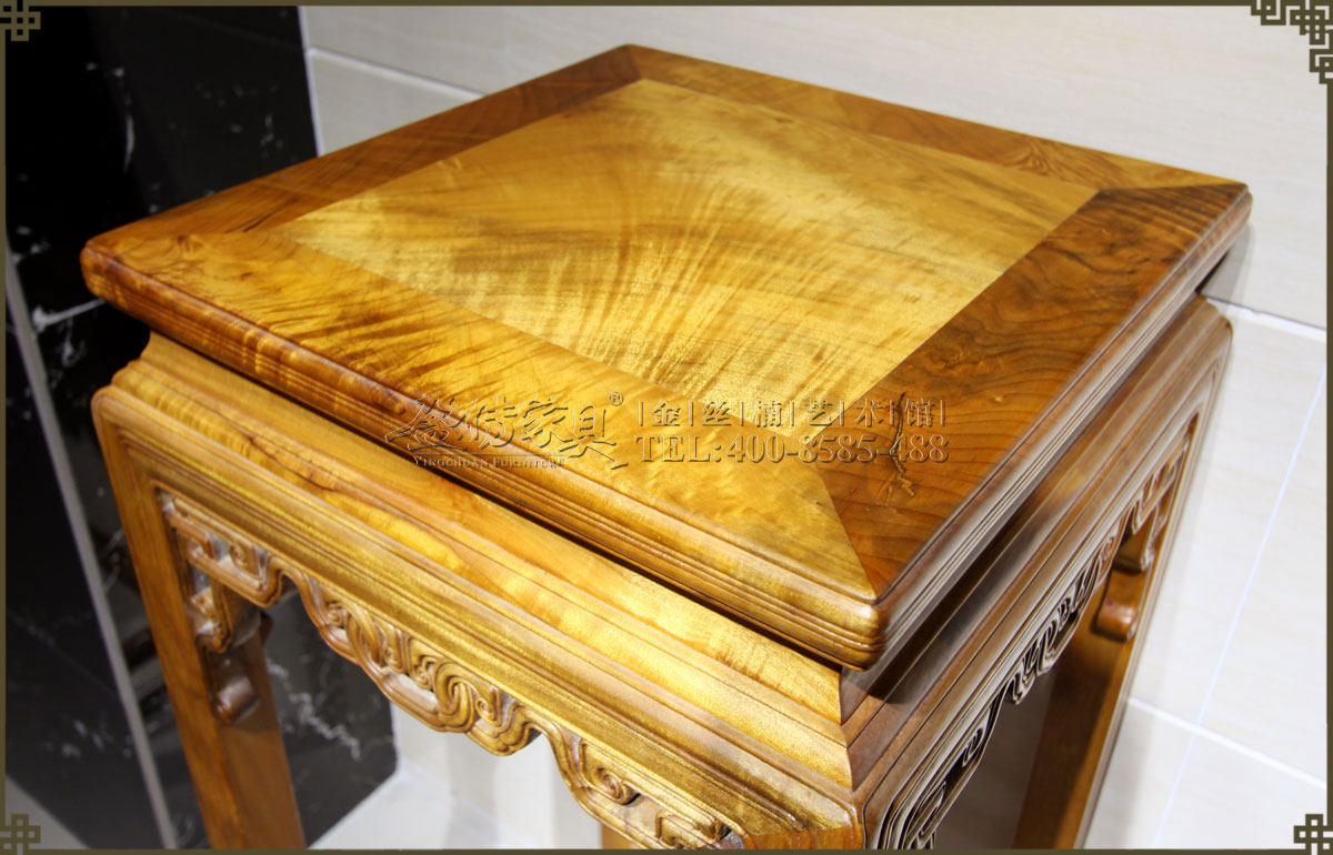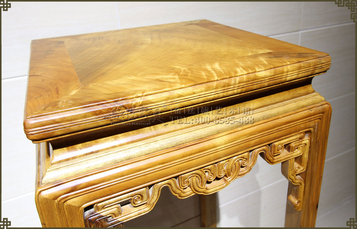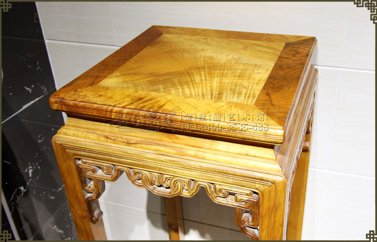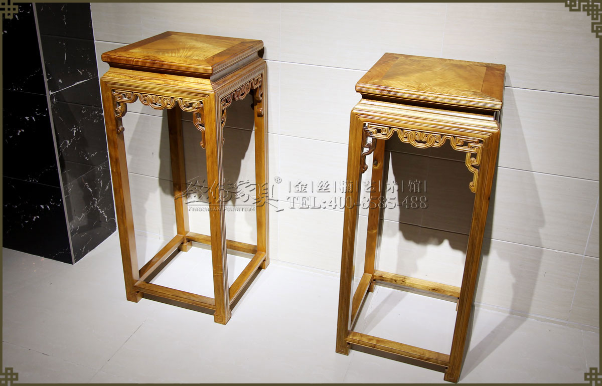 花幾也稱花架,承托花盆、盆景或其它小件擺設(shè)之用。此幾呈觀出貴氣大方的氣質(zhì),簡約大方,精致無比。紋路精美,幾腳修長,造型優(yōu)美,散發(fā)古典美麗,非常有格調(diào),能很好地裝飾您的家。