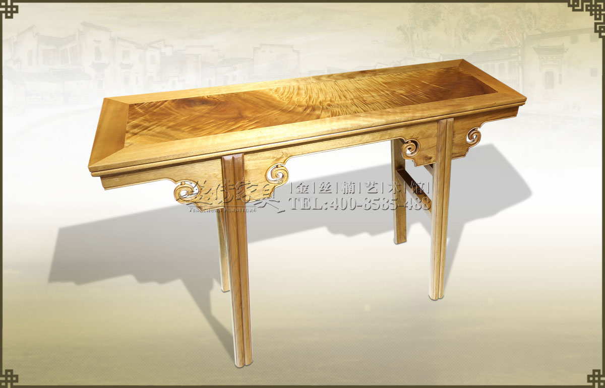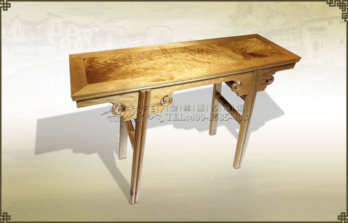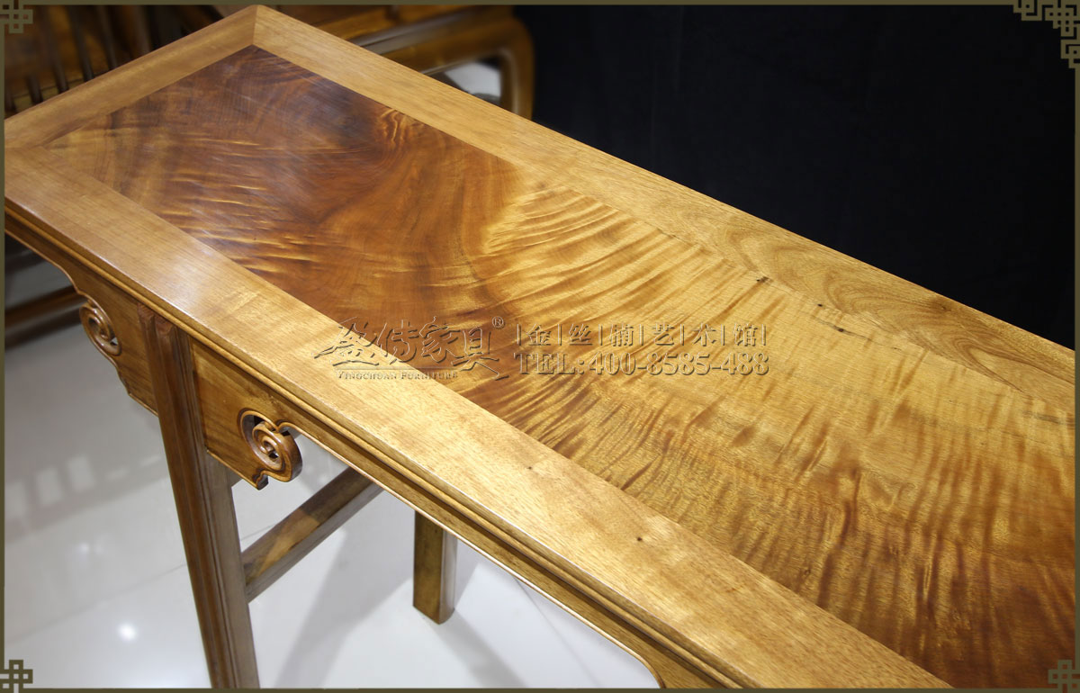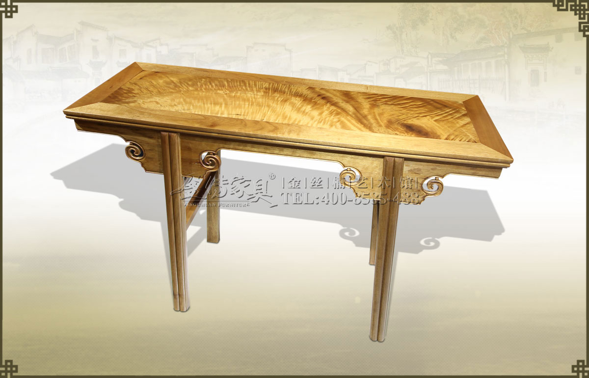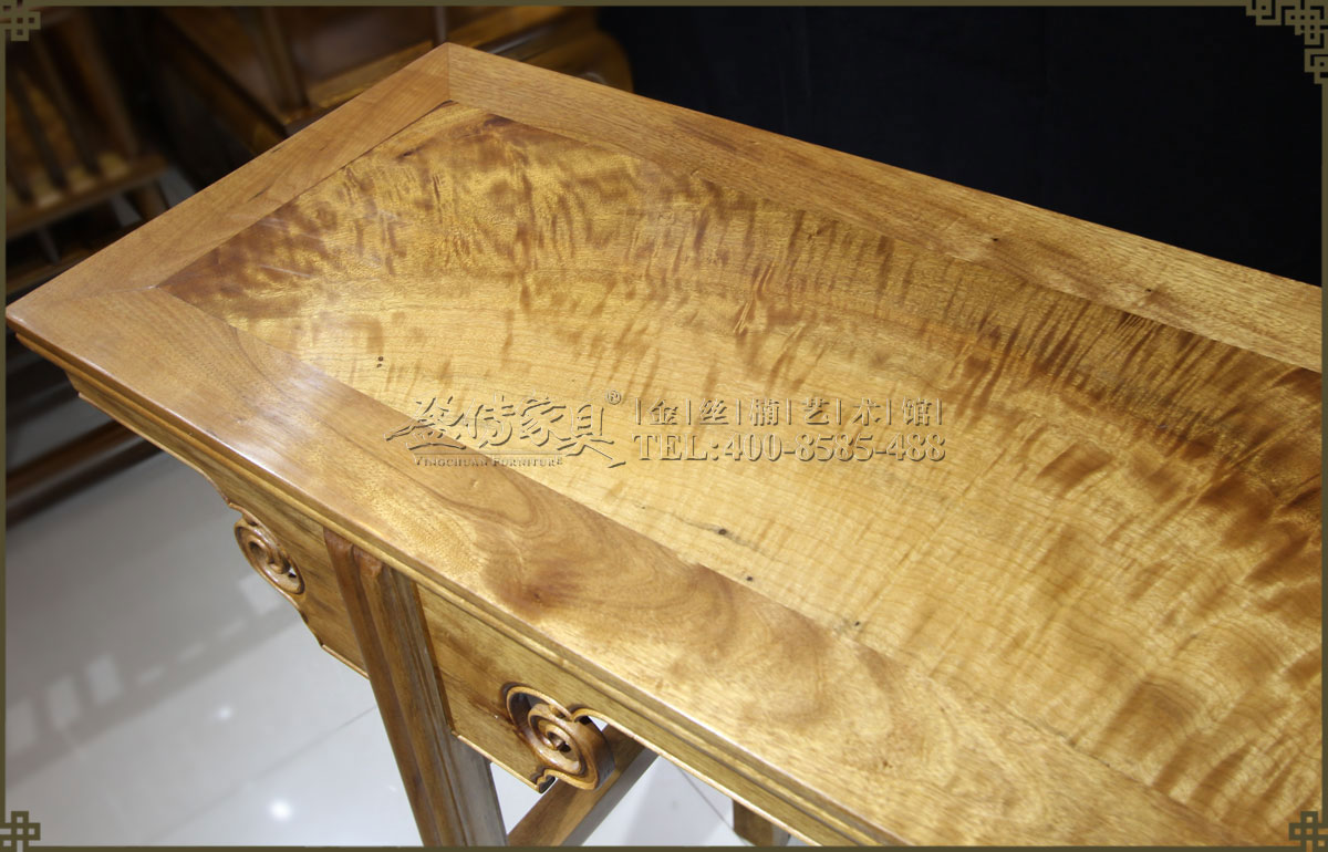 平頭案可上承博古擺設(shè),置于室內(nèi)貼墻壁、隔扇、欄桿擺放,或順著窗臺(tái)陳列,又可單獨(dú)陳設(shè)用以間隔室內(nèi)空間,易與家具裝修搭配,非常實(shí)用。無論從用料、工藝、藝術(shù)等各方面來看,它都是名貴古典家具的代表之作。