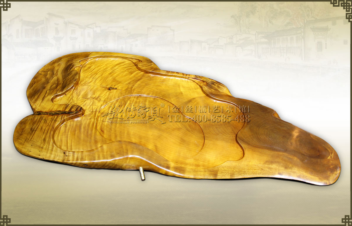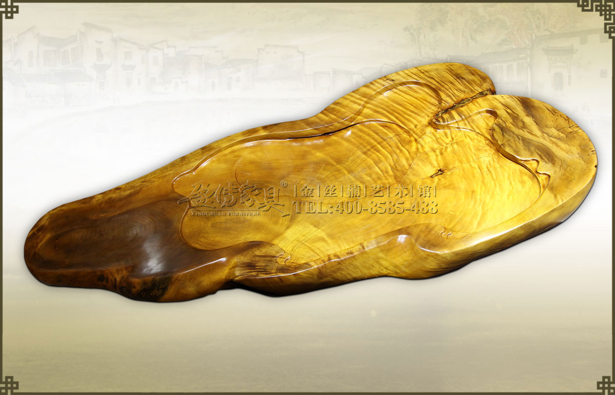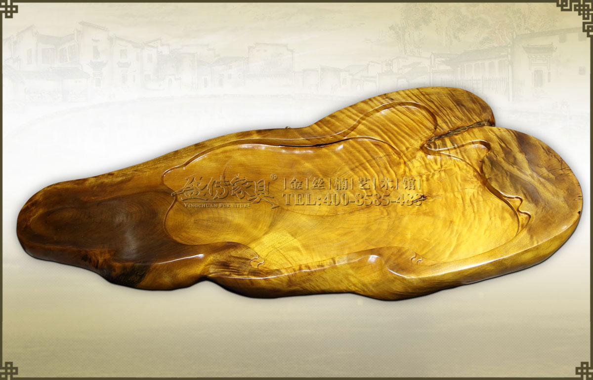 天然的造型猶如靜謐的湖泊,水波紋像一陣微風泛起的漣漪,散發祥和的氣息,使人找到內心的寧靜。在如此美妙的金絲楠茶盤上擺放精致的茶器,泡一壺茶,聞一聞茶香,品一口茶,是多么愜意享受的事情啊,人生快樂不過如此。