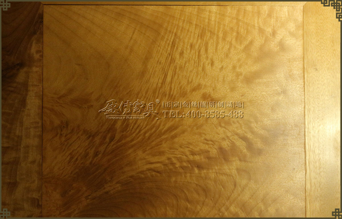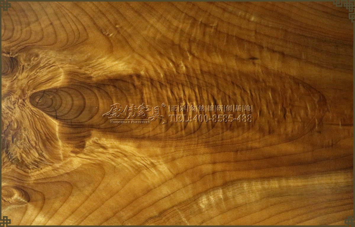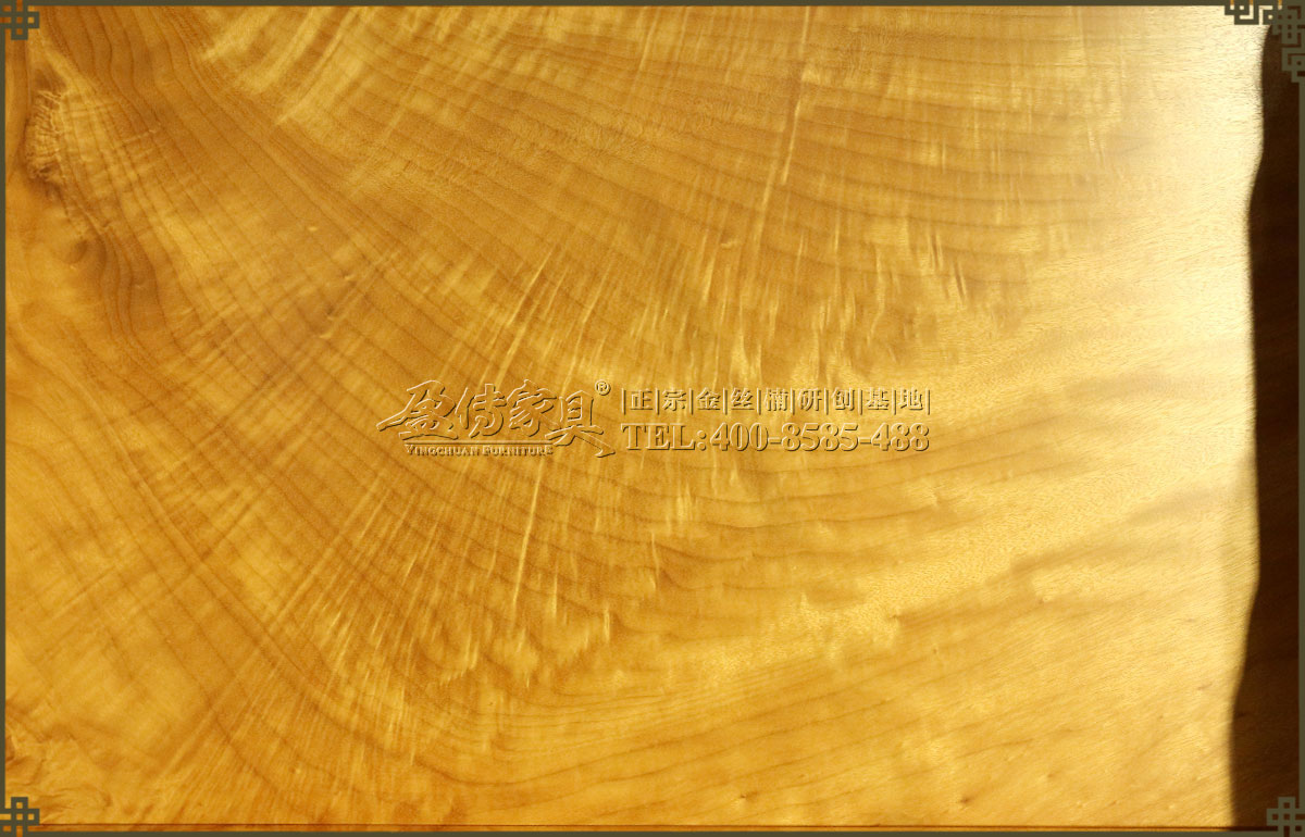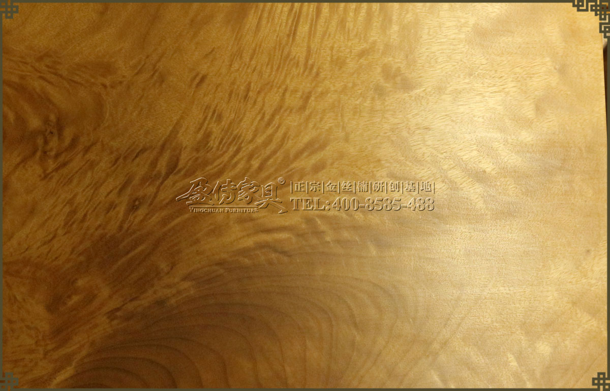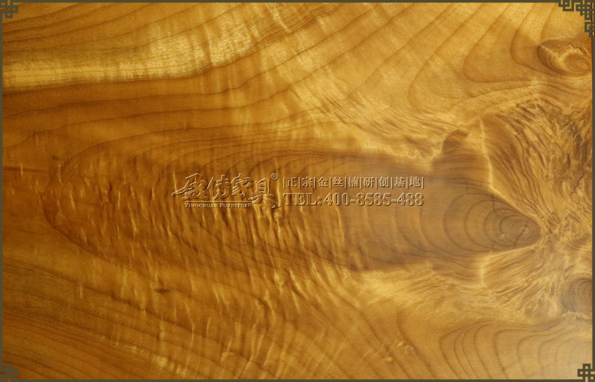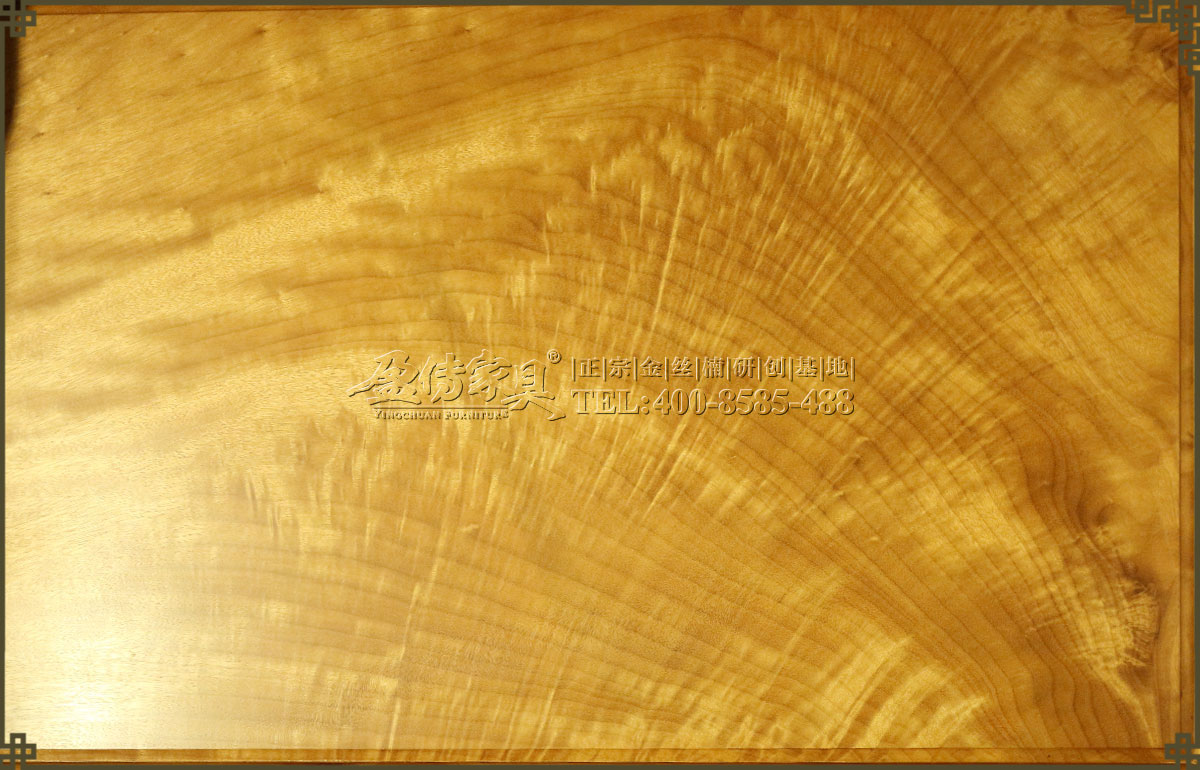 此款金絲楠沙發面板紋理對稱,實為難得的上品之作,其背板天然形成濤濤江水圖案,泛波粼粼,風景迤邐,引人遐想。高花架、方幾、炕幾的面板之中均游弋著一尾金鯉,形態各異,金絲隱隱,更是寓意連年有余。