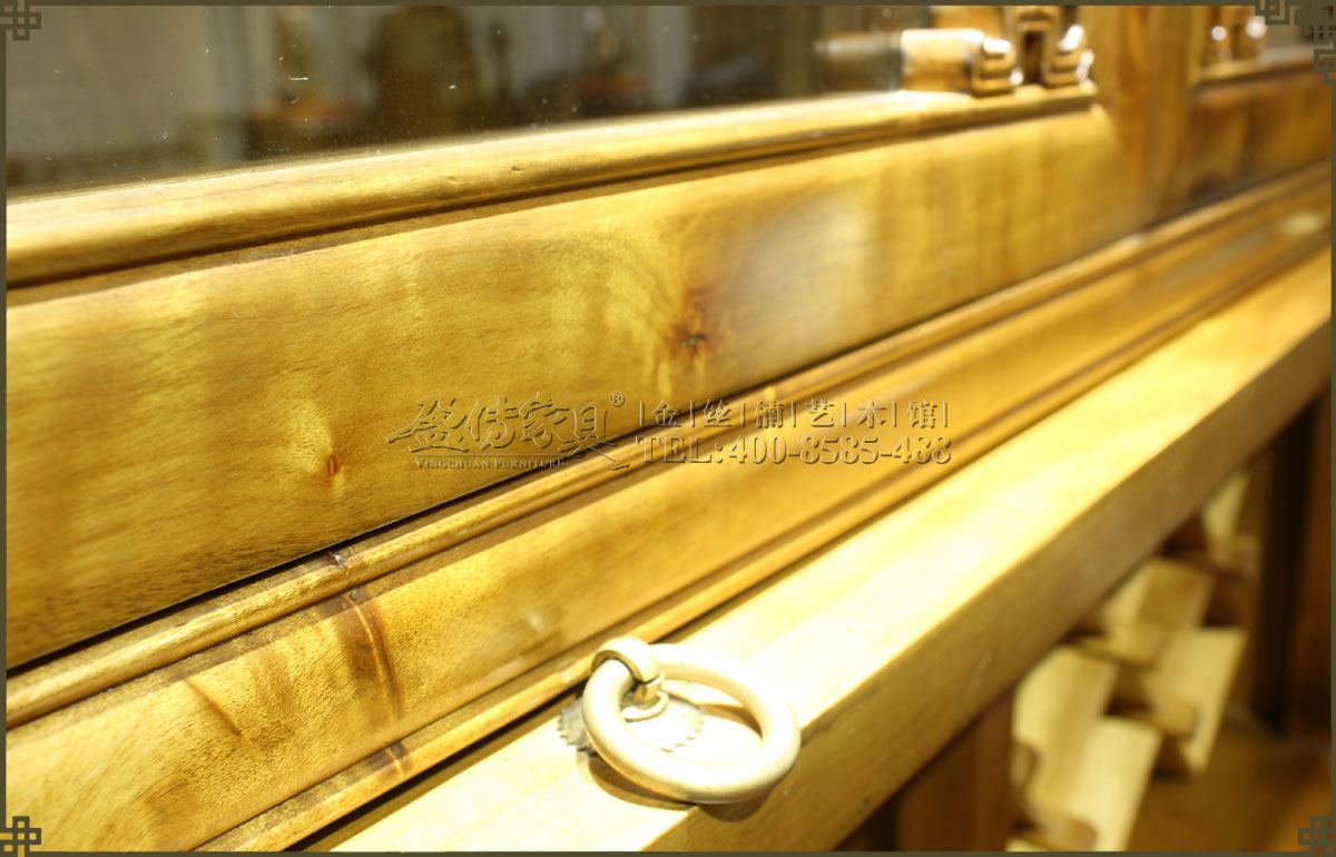 此金絲楠酒柜不僅有儲藏酒的功能,還兼具裝飾作用,有很強的裝飾性,古色古香,沉穩大氣,氣韻高雅,是當代古典家具創新的款式,是古韻今風的典范。